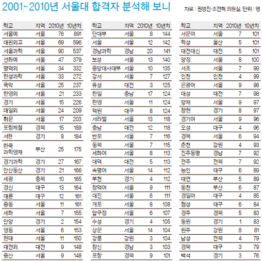 2010학년도 [휘문고] 대학 합격자 현황