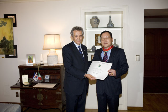 이 대표는 17일 주한 이탈리아 대사관에서 조르조 나폴리타노 이탈리아 대통령이 수여하는