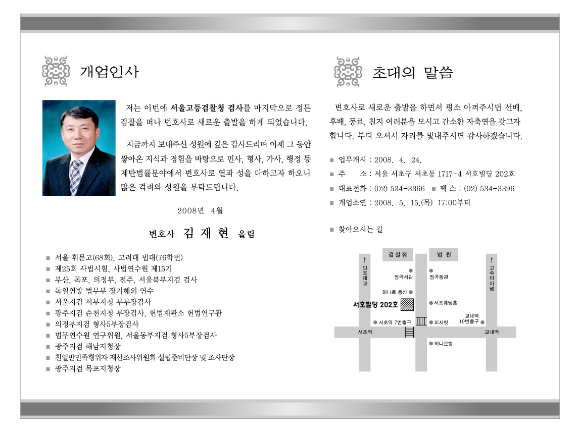 68회 김재현 변호사 개업식 안내 5. 15. 17:00