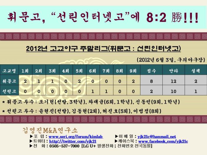 - [3001] 김영진 휘문고 야구부, “선린인터넷고”에 8:2 勝!!! 2012-06-03