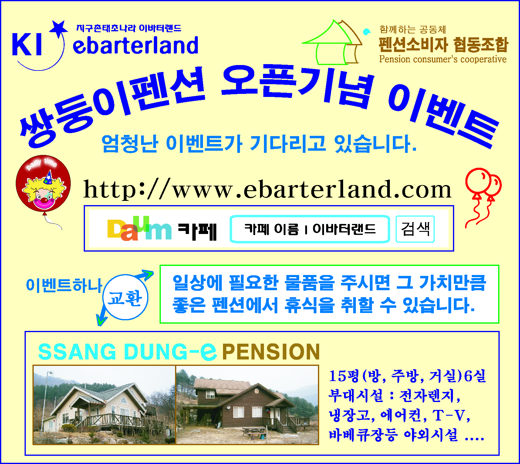 이바터랜드/쌍둥이 펜션으로 오시면 더 많은 이벤트가 준비되 있습니다.바로가기
