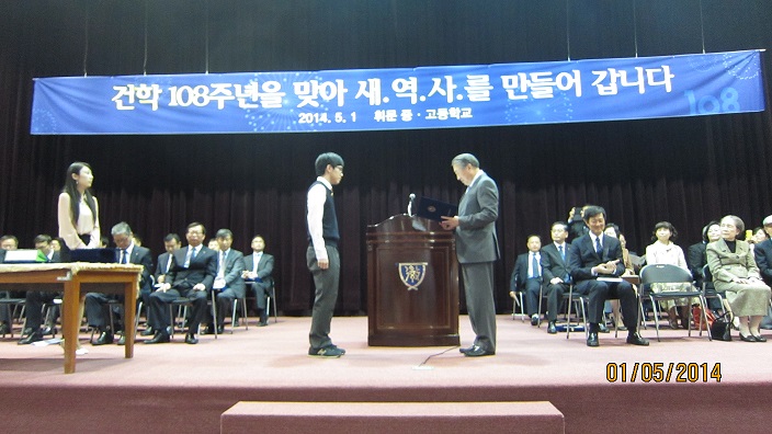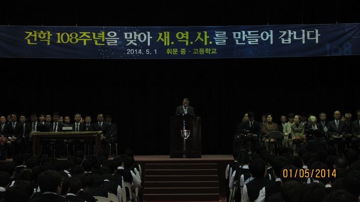 지난 5/1(목), 문규영 교우회장은 제108주년 휘문 개교기념식에 참석,
