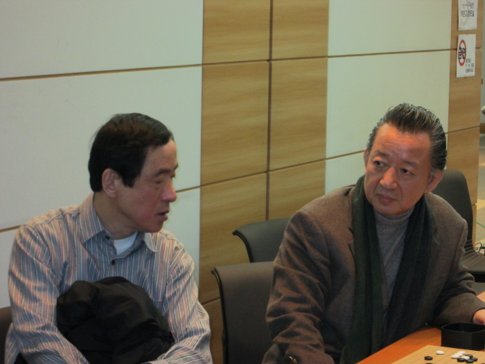 64회 최욱관 선수와 64회 조준래 단장이 연습삼아 돌을 놓습니다