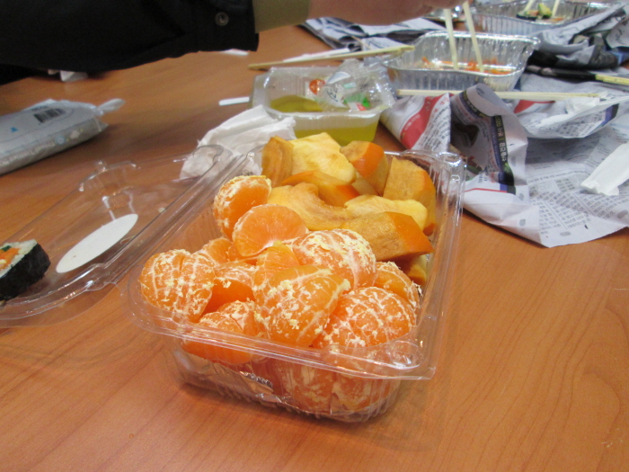 김밥과 과일로 간단한 점심을 하고 바로 이어지는 2국을 준비한다.