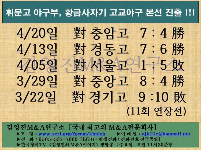 - [3155] 김영진 휘문고, 황금사자기 고교야구 본선 진출!!! 2014-04-20