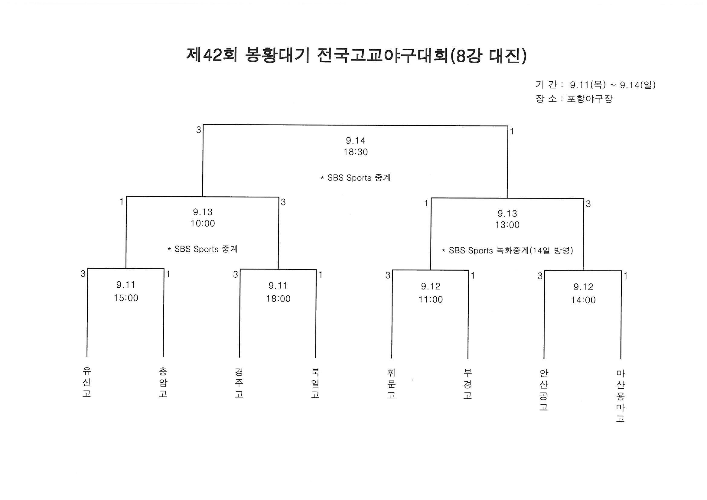 제42회 봉황대기 고교야구 8강 대진표가 확정되었기에 올립니다...