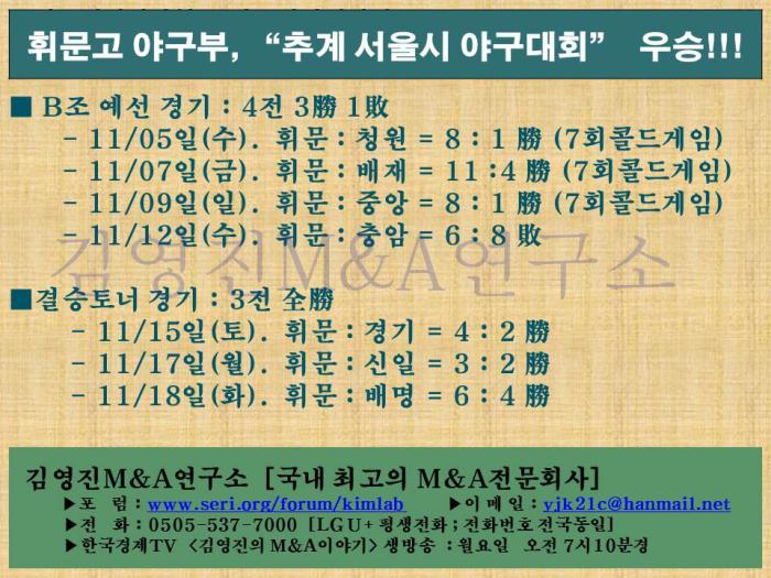 - [3199] 김영진 휘문고 야구부, "추계 서울시 고교야구" 우승!!! 2014-11-23