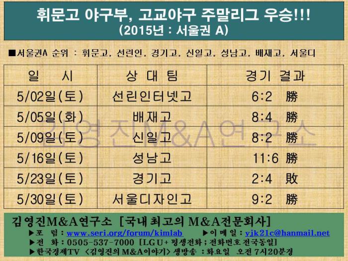 - [3221] 김영진 휘문고 야구부, 2015년 고교야구 주말리그 우승!!! 2015-05-30