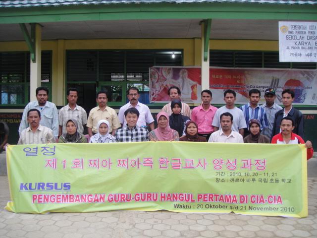 또 학생들에게 한글을 가르치는것 못지않게 중요한것이 현지 ''한글교사 양성"이라고 생각합니다. 올해도 12월부터 "한글교사양성과정"을 실시할 예정입니다. 문자를 가르치고 폭넓게 사용하게 하기 위해서는 외국인 (한국인)이 작접 가르치는것 보더 현지인이 현지 아이들을 가르치는 것이 장기적으로는 훨씬 효과적이기 때문입니다. 부톤섬의 많은 민족들은 찌아찌아족의 한글교육을 주의 깊게 바라보고 있습니다. 찌아찌아족의 한글교육 성패가 한글위 더 넓은 지역과 더 많은 민족에게 전파되는 시금석이 될것으로 확신합니다.