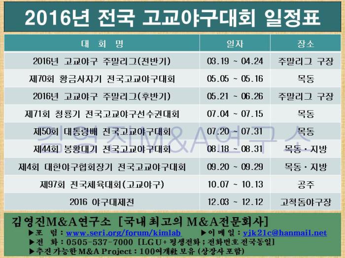 2016년 전국고교야구대회 일정표