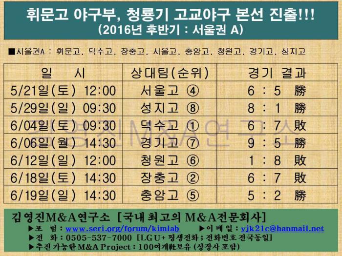 - [3266] 김영진 휘문고 야구부, 2016년 고교야구 주말리그 일정표(후반기) 2016-05-04