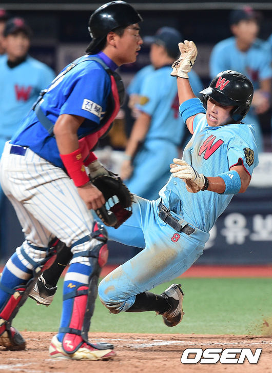 이정후가 홈까지 내달려 슬라이딩. 선취 득점을 올렸다.