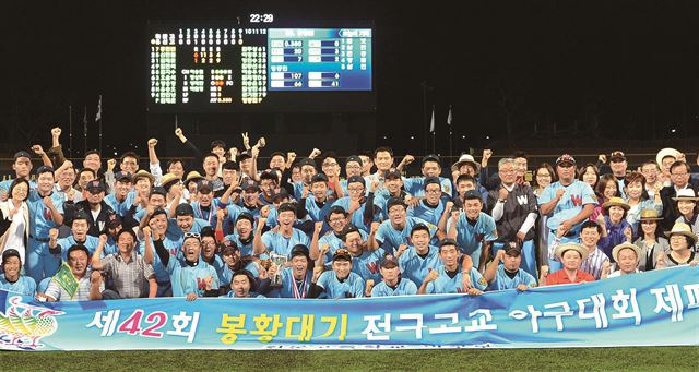 군산상고와의 결승전에서 접전 끝에 연장 13회 4-3 끝내기 승을 거뒀다.