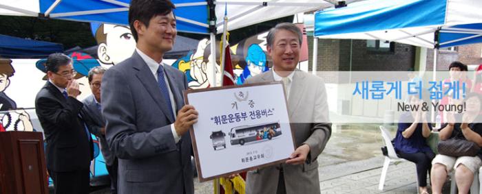 휘문교우회에서 운동부원들을 위해 모교에 기증한 버스. 휘문야구부후원회가 따로 있다.