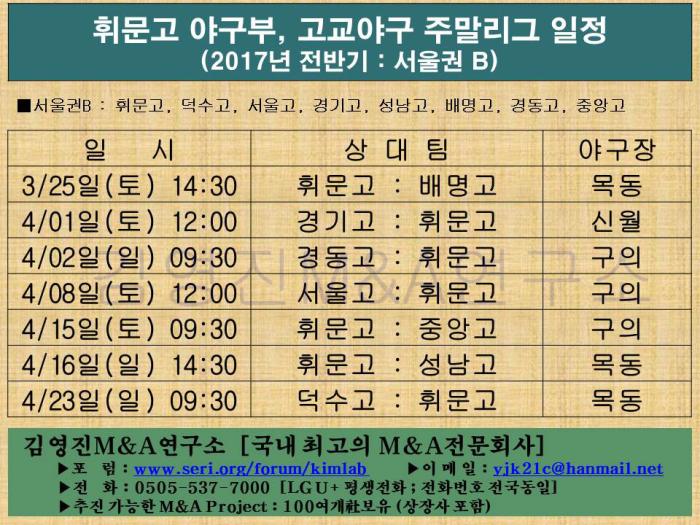 휘문고 야구부, 2017년 고교야구 주말리그 일정표(전반기)