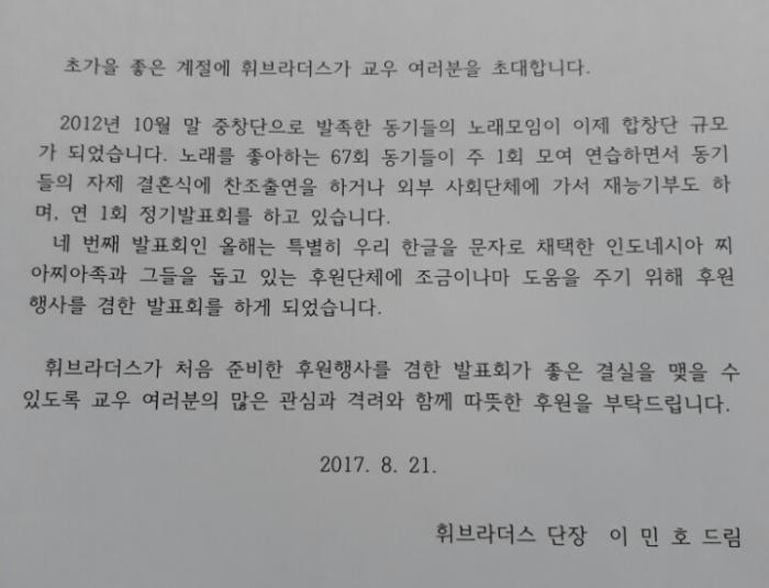 *특히 이번 연주회는 인도네시아 찌아찌아족 한글보급사업을 후원하는