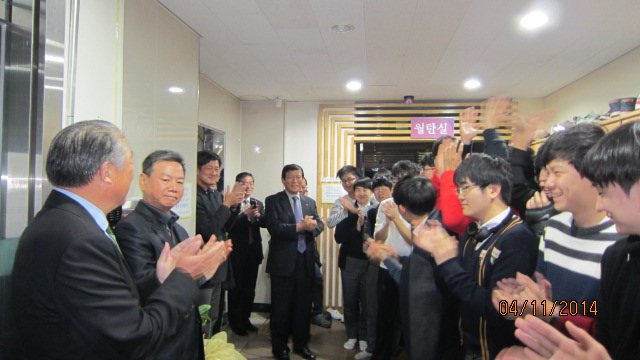 11/4일 저녁 8시30분 부터 9시까지, 모교 본관 도서관에서 수능 준비에 한창인 고3학생들을 방문 하고, 그동안 열심히 준비한 실력을 유감없이 발휘하여 훌륭한 결실을 이루어 휘문의 명예를 드 높여 달라고 격려 하였으며,
