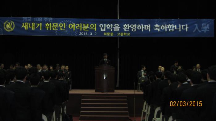 2015년 3월2일(월), 모교 강당에서 휘문중학교, 휘문고등학교 입학식이 있었습니다.