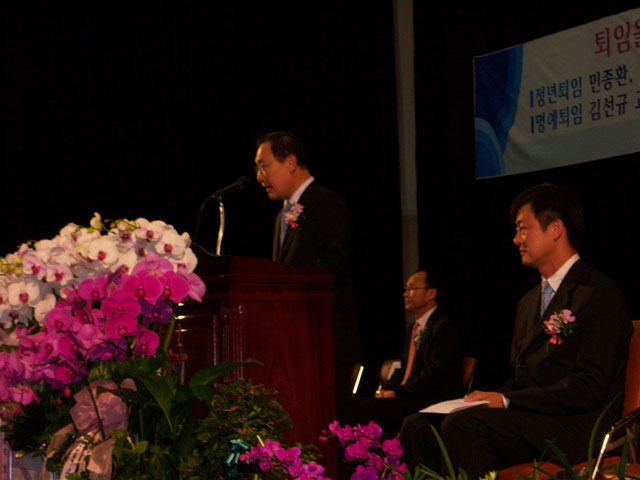 말씀을 전달하였고, 새로 취임하시는 신임 교장(김 선창 교장)님에게 축하의 말씀을 전하셨다.