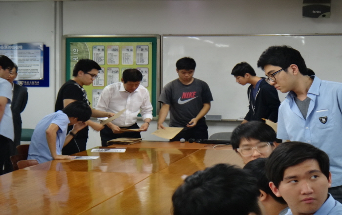 모교도서관에서 금년도 고3 졸업예정 학생들의 대표들을