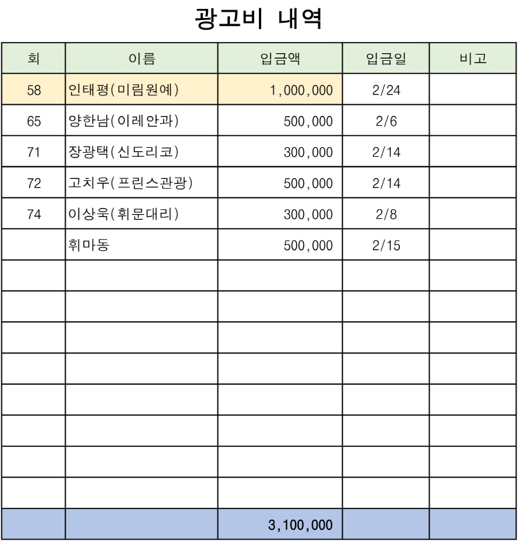 개교 111주년 휘문 문화예술제의 찬조금 내역 및 티켓 내역, 광고비 내역을 올립니다.