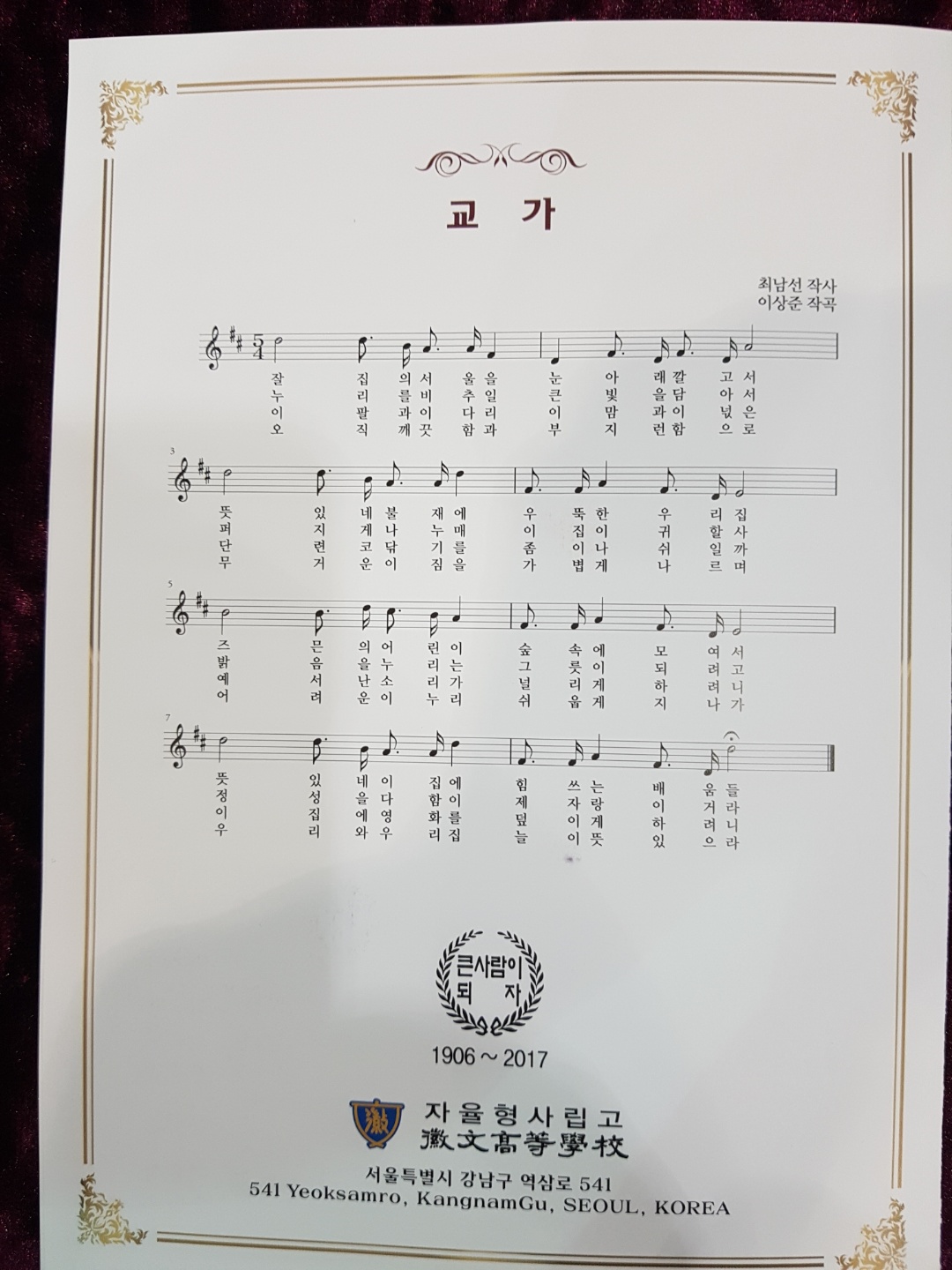 모교 휘문은 제 110회차 졸업생을 배출하였다.