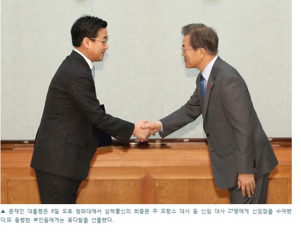 문 대통령 최종문(70회) 주 프랑스 대사에 신임장 수여
