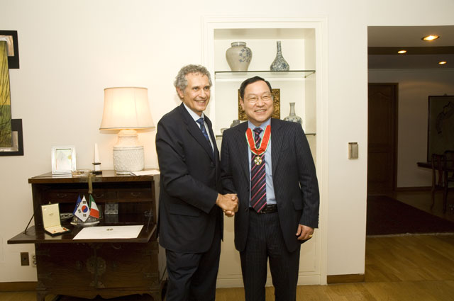 이 대표는 17일 주한 이탈리아 대사관에서 조르조 나폴리타노 이탈리아 대통령이 수여하는