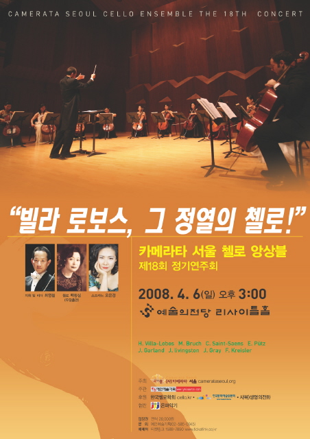 <P class=HStyle0 style="LINE-HEIGHT: 140%"><SPAN style="FONT-FAMILY: '굴림'">금번 제18회 카메라타 서울 정기연주회에서는 봄의 한 가운데에서 피아졸라의 탱고, 빌라 로보스의 브라질풍의 바하 등의 작품으로 정열의 첼로를 선보이며, 서울대 음대 백청심교수가 우정출연하고, 세종대 소프라노 오은경 교수가 협연 무대로 참여하여 4월의 첼로와 아름다운 하모니를 이루어 클래식 팬들에게 길이 기억에 남을 연주를 선사할 것이다.</SPAN></P>