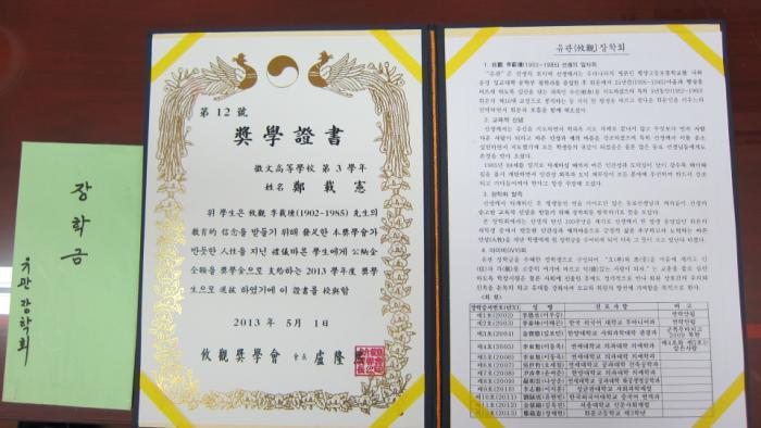 모교에서 "유관장학회"로부터,유관장학금 수여식이 있었습니다!