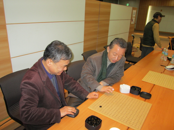 64회 최욱관 선수와 64회 조준래 단장이 연습삼아 돌을 놓습니다