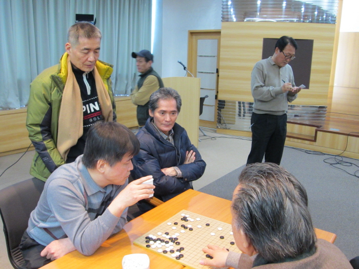 앞선 선수가 대국을 하는 동안 그 뒤에 나설 선수들은 대국을 주시하며