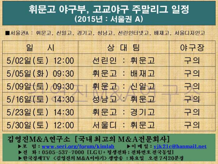 - [3215] 김영진 휘문고 야구부, 2015년 고교야구 주말리그 일정표 2015-04-11