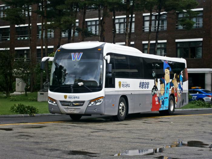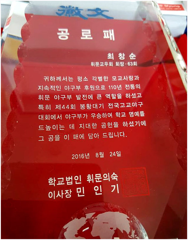 휘문교우회에서 운동부원들을 위해 모교에 기증한 버스. 휘문야구부후원회가 따로 있다.