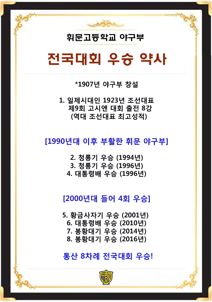 휘문고는 16일 수원 KT 위즈파크에서 열린 '제44회 봉황대기 전국고교야구대회'