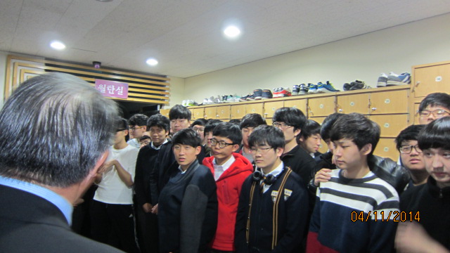 11/4일 저녁 8시30분 부터 9시까지, 모교 본관 도서관에서 수능 준비에 한창인 고3학생들을 방문 하고, 그동안 열심히 준비한 실력을 유감없이 발휘하여 훌륭한 결실을 이루어 휘문의 명예를 드 높여 달라고 격려 하였으며,