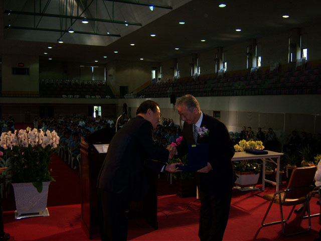 신흥우 교우회장은 김 선규 교장선생님께 송공패 전달과 송공사로 따뜻한 위로와 격려의