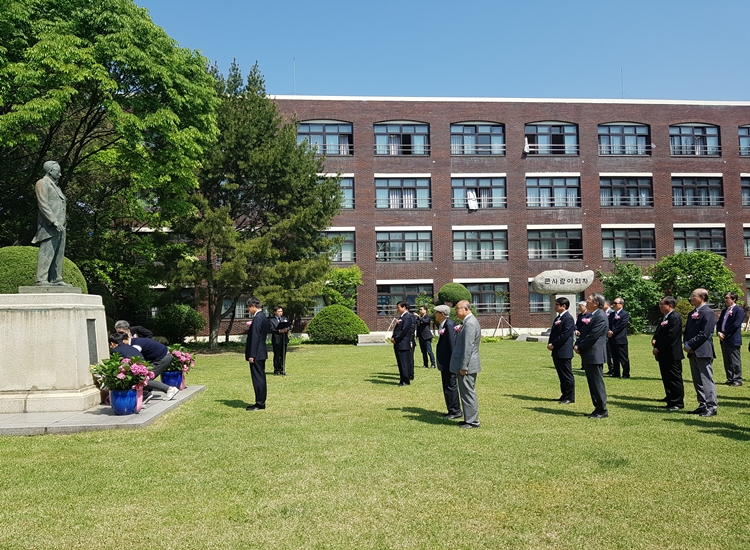 해마다 5월 1일에 가져왔던 “모교 개교기념일 행사”가 모교 강당에서 있었습니다.