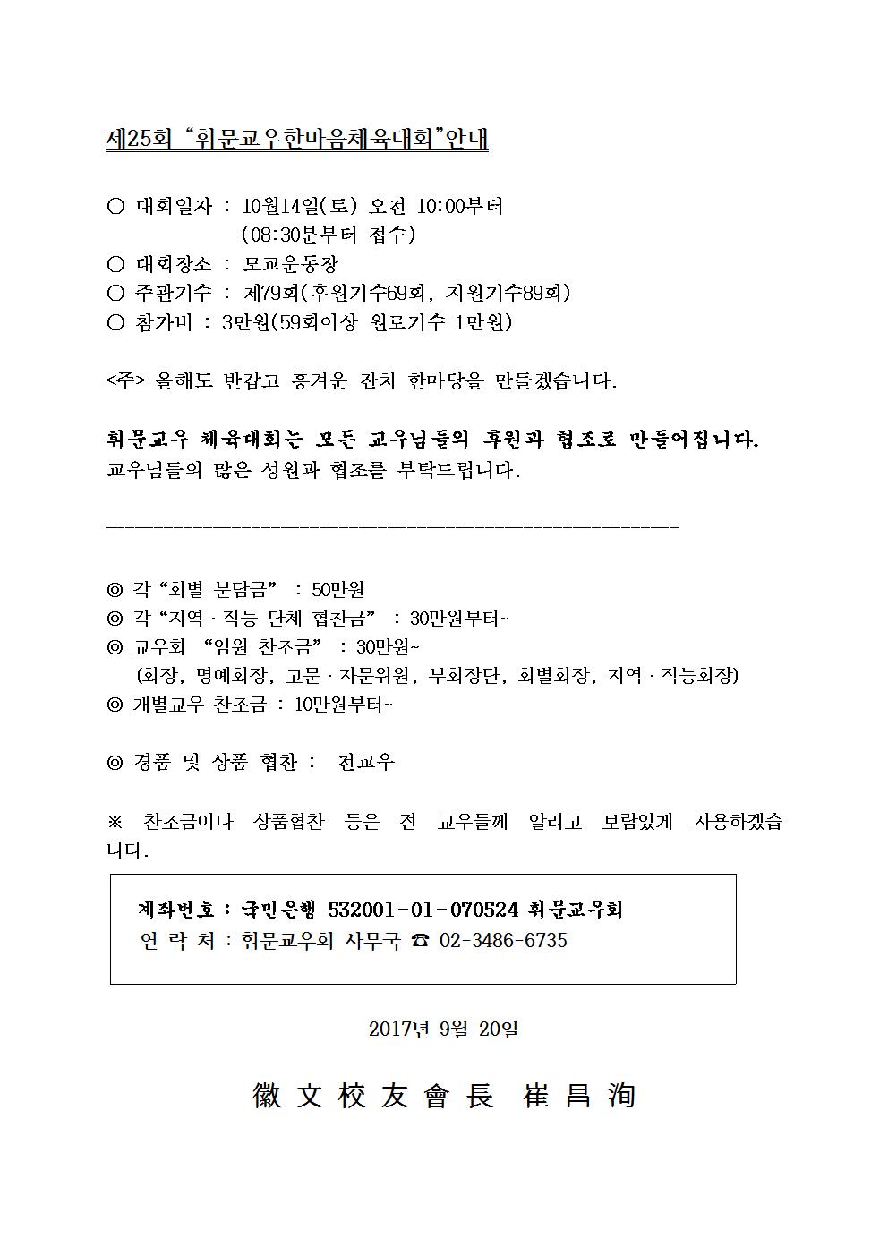 - [493] 관리자 제25회 '휘문교우한마음체육대회'안내 2017-09-20