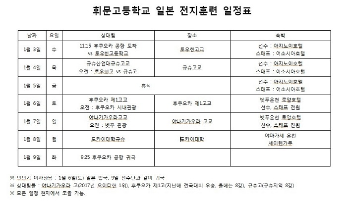 고교 농구팀이 동계 전지훈련을 떠납니다.