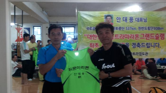 안대용(61)교우(울트라엔지니어링 대표,울트라검도관 관장)가 대한민국 울트라마라톤 그랜드슬램 최초 4회 달성을 하여 휘마동(회장 김응규)을 비롯한 김선기고문(조선일보마라톤 명예의 전당)등 선후배가 모여 충무로소재 울트라검도관에서 축하연이(2012.7.28) 있었습니다.