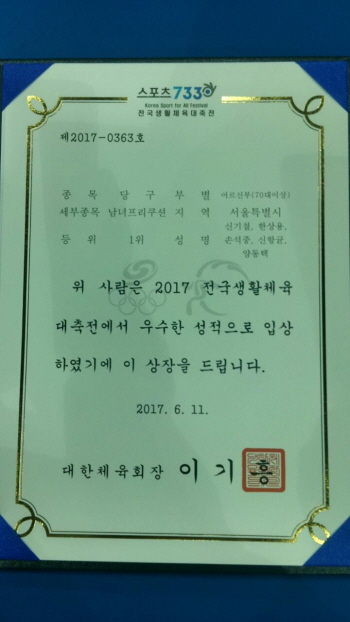 신기철 교우(50회)께서는 서울시 대표 단체전에서 우승,