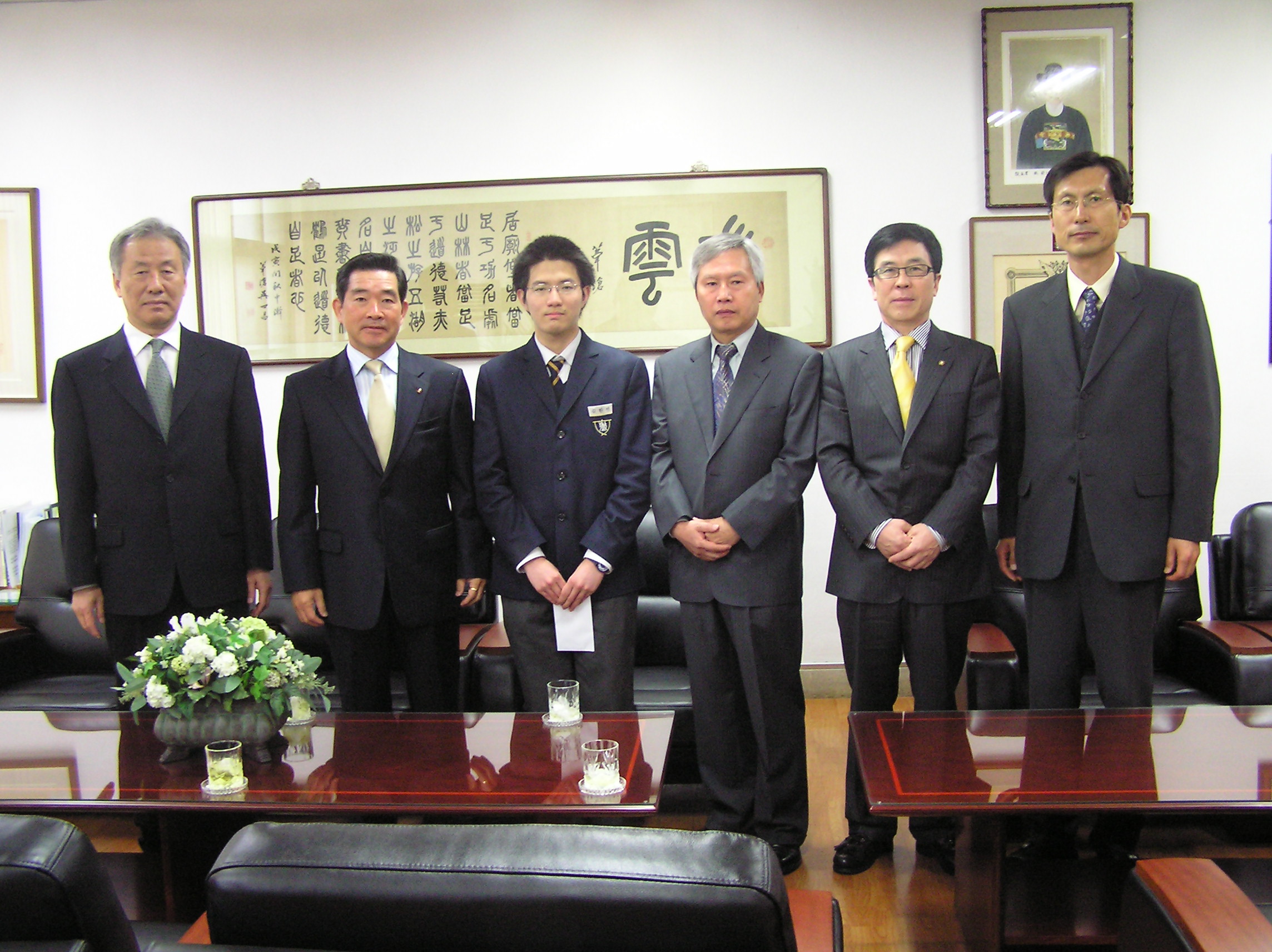 <P> 2008년도 애교동지회 장학금은 김한선군(고3)에게 지급키로 하였습니다.</P> <P>특이 김한선군은 공부도 잘하지만(의대지망생) 기악부에서 주장으로 활동하고 있다며 </P> <P>밴드부 부장 선생님이신 송병묵(70)교우께서 추천하시었습니다.</P> <P>사진:좌로부터 김선규교장, 애동 회장 장용이(56),김한선(장학생),부회장 김형원(59),</P> <P>운영위원장,임연철(60),조항열지도선생</P>'>